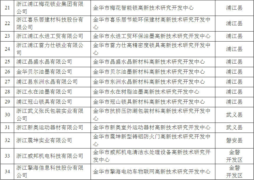 附件:2018年第一批金華市擬認(rèn)定高新技術(shù)研發(fā)中心名單